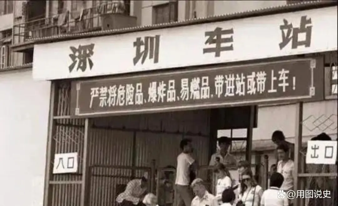 2.1973年,广东省宝安县深圳车站,进进出出的旅客。