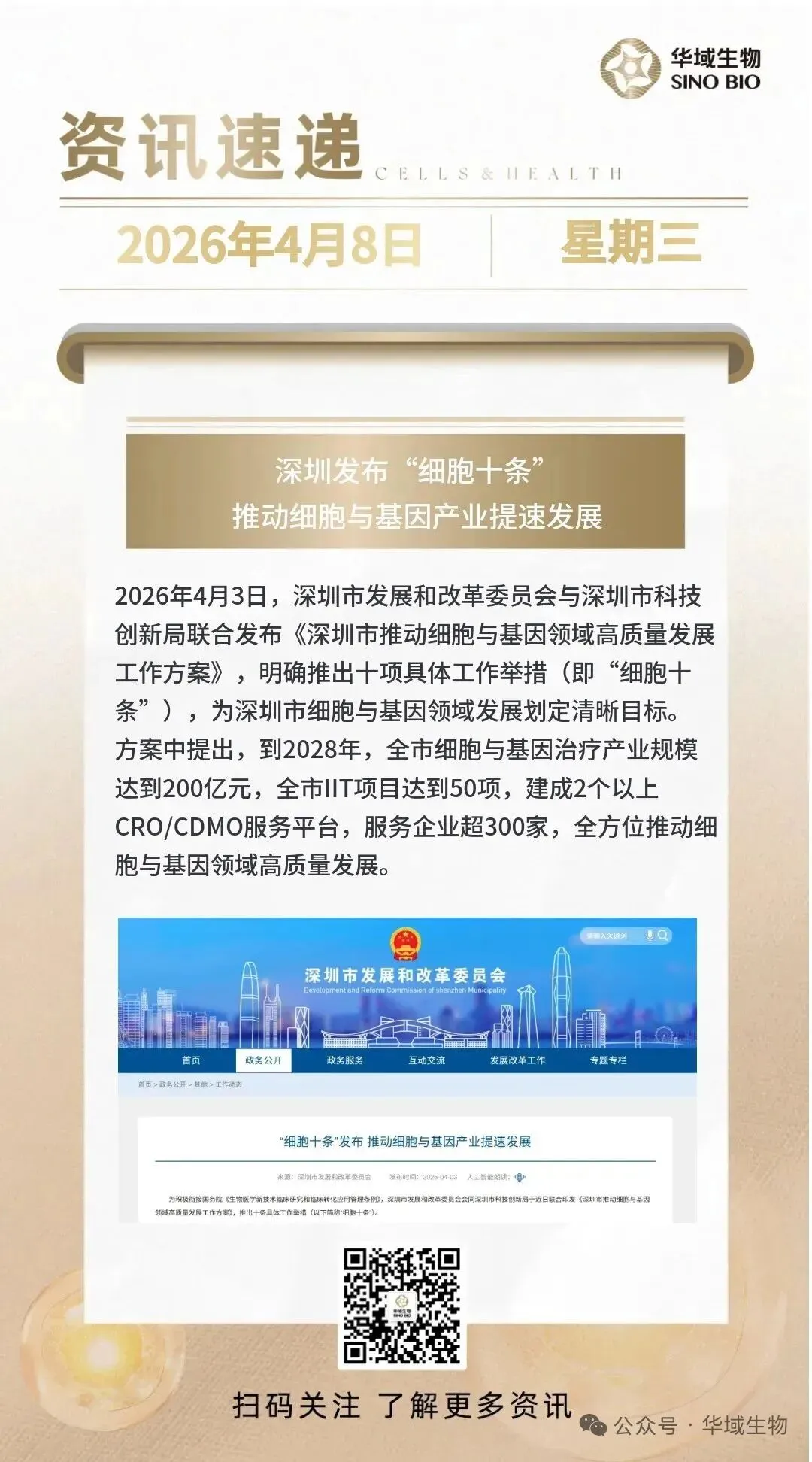 >地方政策:《深圳市推动细胞与基因领域高质量发展工作方案》
