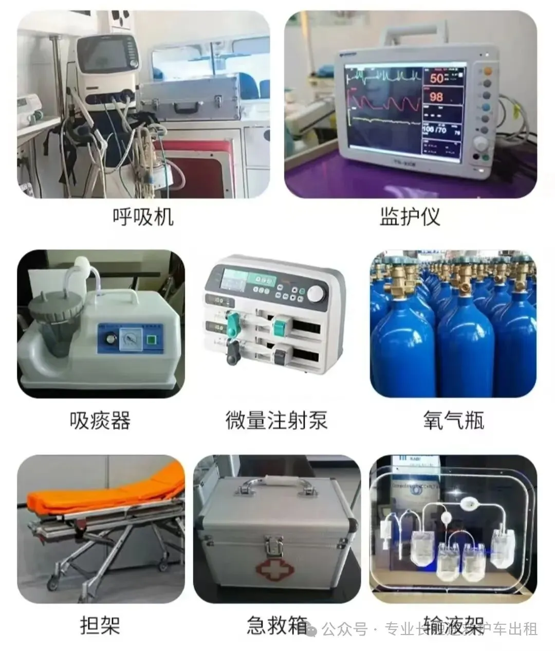 每一辆出租的救护车,都是一座移动的“生命堡垒”。车内配备先进且齐全的医疗设备,有持续为患者提供稳定呼吸支持的呼吸机,能在关键时刻恢复心脏正常节律的除颤仪,精准控制药物注射量的注射泵,还有吸痰器、心电图机等一应俱全。同时,车内设有专门的婴儿保温箱,为新生的小生命提供温暖安全的空间。豪华担架床确保患者在转运过程中的舒适,大容量氧气储备则为患者的呼吸提供源源不断的保障。这些高端设备时刻待命,在转运途中为患者的生命安全筑牢坚实防线。