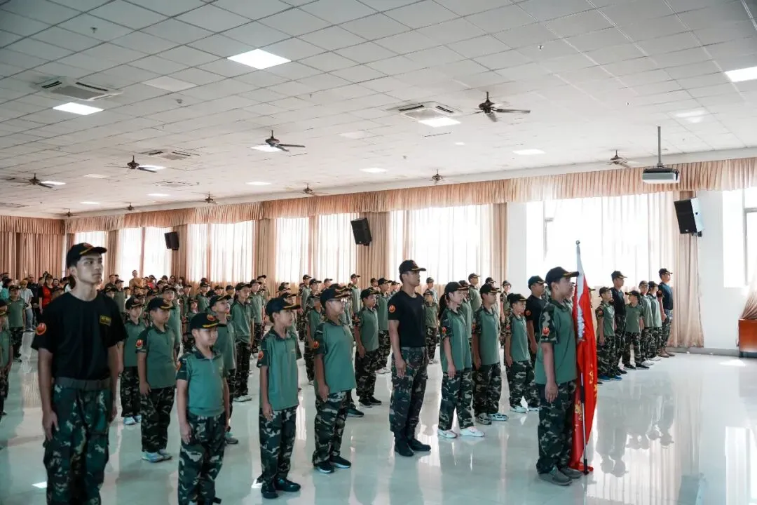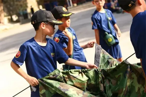 到达营地报到,办理入营手续,领取服装、物资,认识教官和生活老师