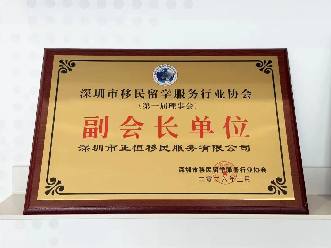 近日,深圳市移民留学服务行业协会正式授予正恒移民“副会长单位”荣誉称号。这一认可既是对正恒移民深耕行业十一年、合规经营、专业服务的高度肯定,也是行业对其品牌实力与行业贡献的权威背书。此次荣膺副会长单位,标志着正恒移民在深圳移民留学行业的影响力进一步提升,将以更具引领性的姿态,推动行业规范化、高质量发展。