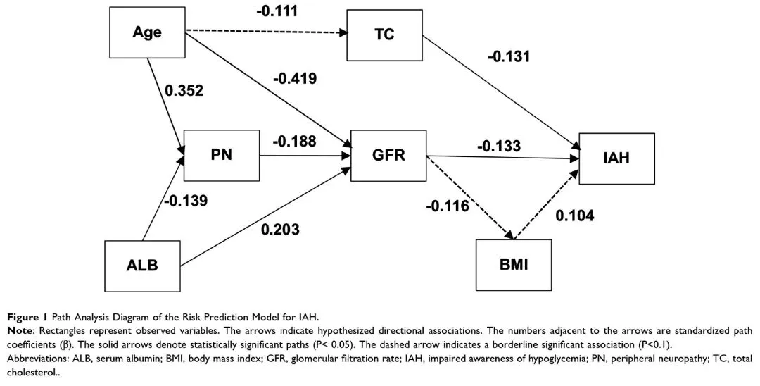 diabetes mellitus, hypoglycemia, impaired awareness of hypoglycemia, risk prediction model, path analysis