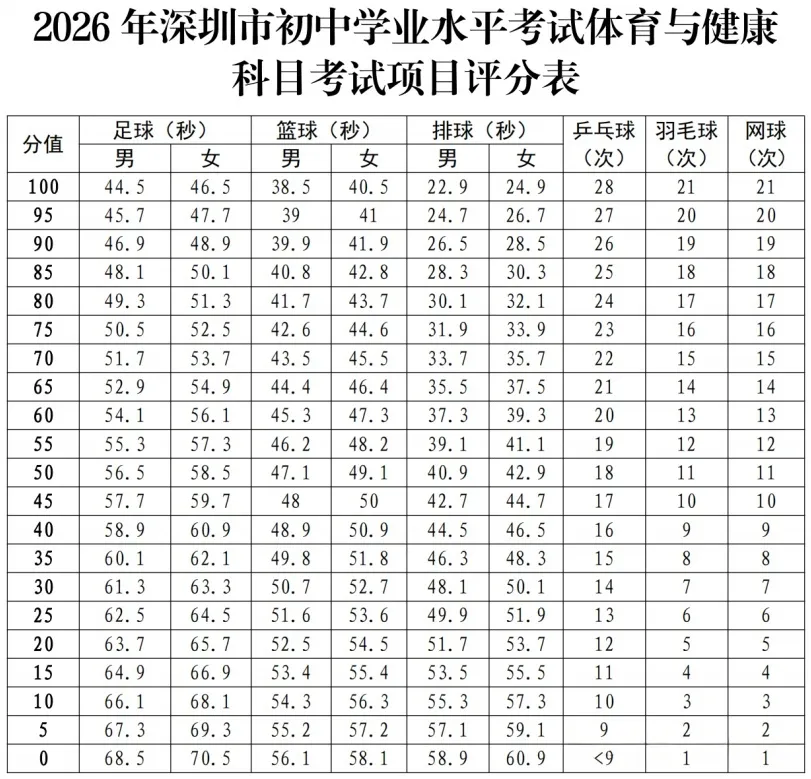 一、26深圳体育中考变化