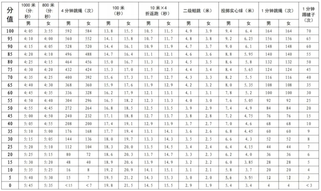 今年体育中考想要拿满分需要注意什么呢?各项的评分标准又是多少呢?一起往下看看吧~