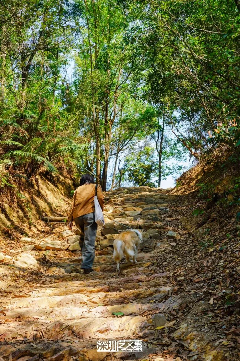 这里没有陡峭的石阶,没有拥挤的人潮,只有泥土与草木交织的自然步道,和随处可见的贴心宠物设施。