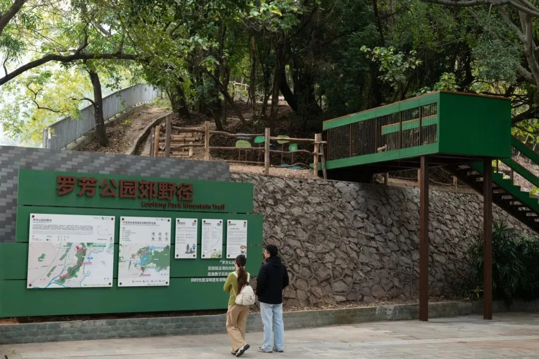 罗芳公园郊野径连接深港口岸,以景观诠释深港交融,并串联罗湖山海连城生态休闲网络,可俯瞰罗湖城区,眺望罗湖、文锦渡、莲塘三座深港口岸。