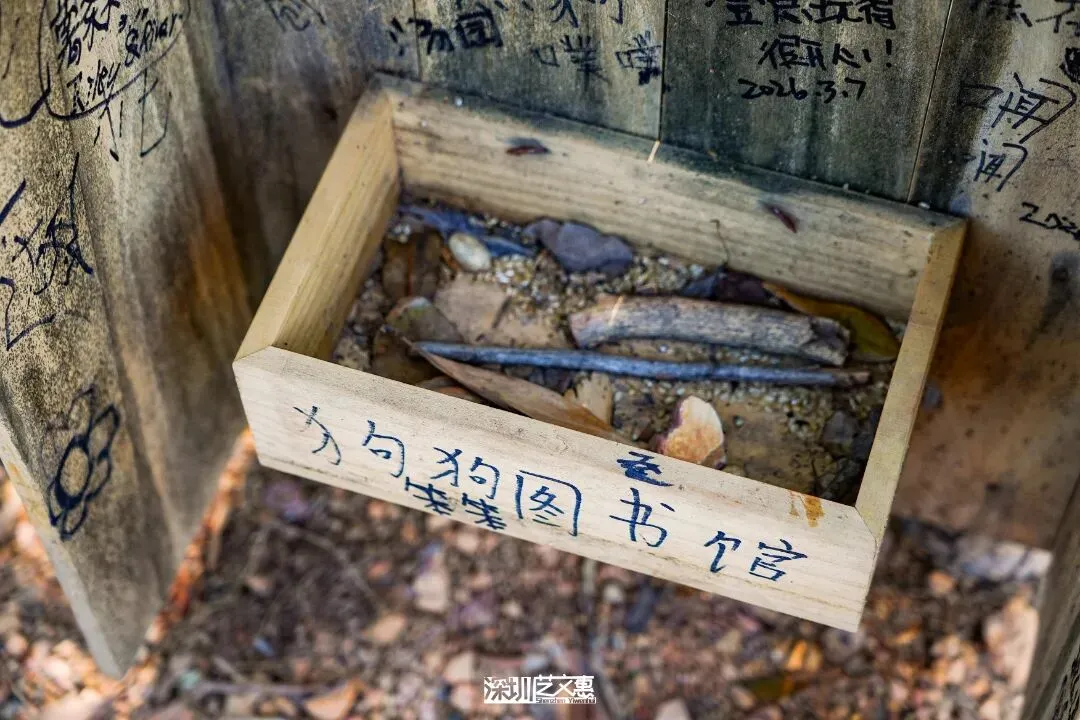 在罗芳公园郊野径沿途,藏着几座特别的设施——“宠物丰容树枝共享站”,也被称为“狗狗图书馆”。