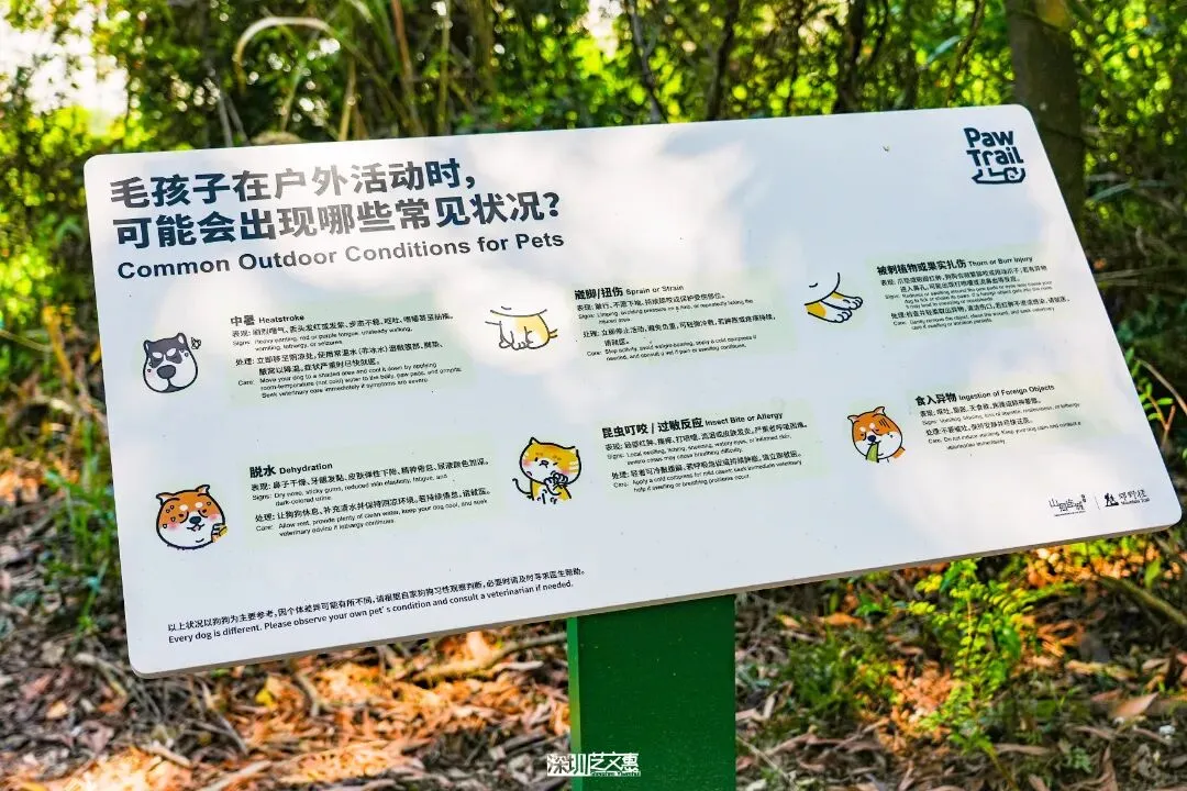 郊野径的环境更接近自然原生态,对宠物来说潜在风险较多。不管是为了保障宠物安全玩耍,还是守护自然环境、维护公共秩序,文明提示与规则标识都至关重要。