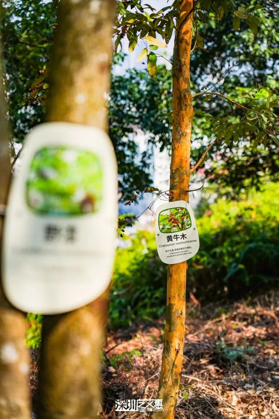 除了用温馨提示牌提醒宠物主应避免宠物食用任何植物之外,郊野径两旁的植物上也悬挂了科普牌,将相对友好植物和有害植物两大类作了细致的划分。