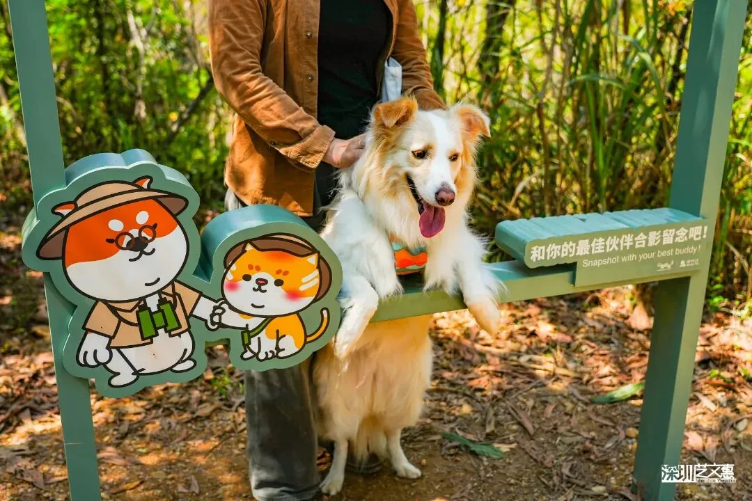 郊野径沿途设置了互动打卡标识,为了让这趟旅程更有仪式感、也更值得分享,可以在这里和你的毛孩子合个影,将旅途变成一份可以记录的小成就。