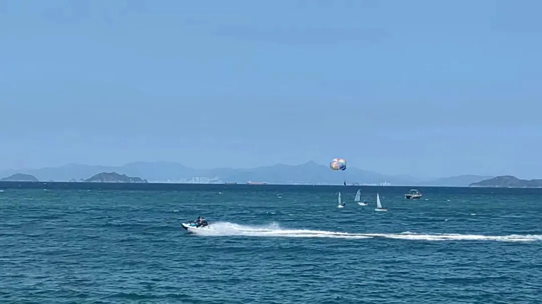 真正让桔钓沙声名在外的,是那片澄澈的海水。它从岸边浅绿渐变成深海之蓝,阳光照下来,整片海面像透明的果冻,浪尖全是碎钻般的光,于是人们给了它“玻璃海”、“果冻海”这样动听的名字。
