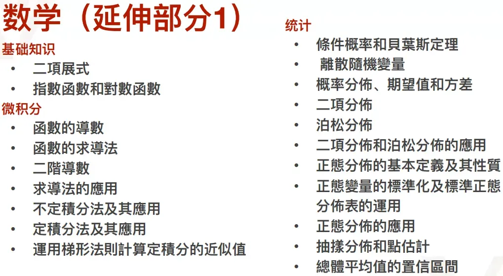 如果你的数学成绩也很不错,那么则可以留意DSE的数学延伸部分(M1/M2)。