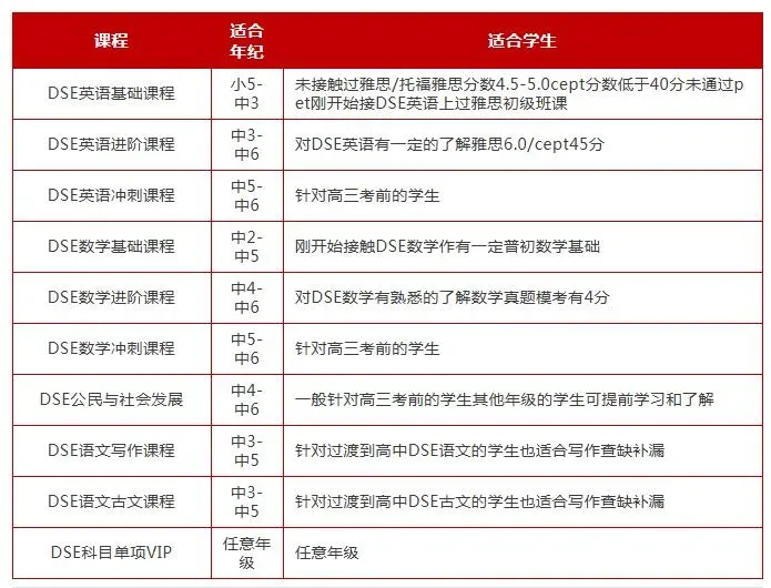 为了帮助同学们更好的衔接DSE课程,我们特开设深圳DSE同步衔接/脱产备考课程,学费便宜提分快!深圳校区同步开课!4门核心科目——中/英/数/公社