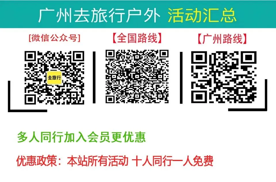 注意:遵规守时是户外良好作风,提早五至十分钟利己又利人;活动行程仅为根据以往活动时间预计,当天的交通状况及队伍的行进速度快慢会造成实际时间上有出入;如果在活动中遇到不可抗力的突发情况,领队有权在不影响活动体验的原则下,根据实际情况调整行程,请大家理解配合。