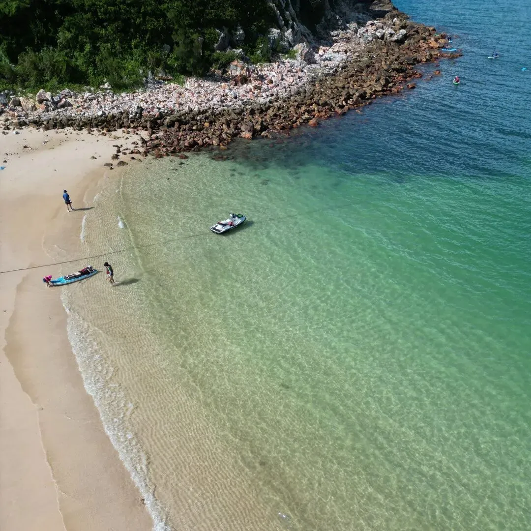 12:30 出发前往东涌海滩,乘快艇飞奔三门岛。沿途欣赏海岛风光,体验海面飞驰电掣的刺激。20分钟航程后登岛北扣码头。