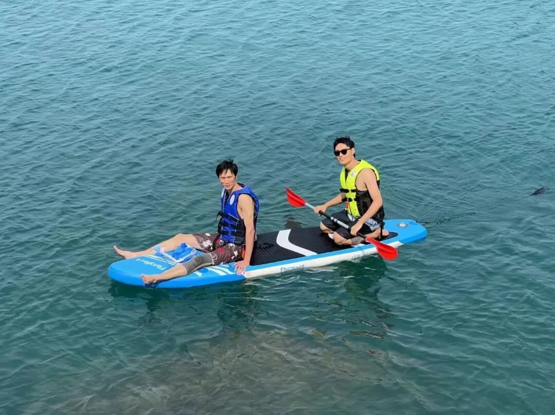 08:00 早餐过后,继续在岛上玩桨板,浮潜,昨天没有玩尽兴的亲们可以岛上嗨起来,大家在海上用桨板摆造型,早上的海水更清澈,如果玩浮潜,能看到清澈海底世界。