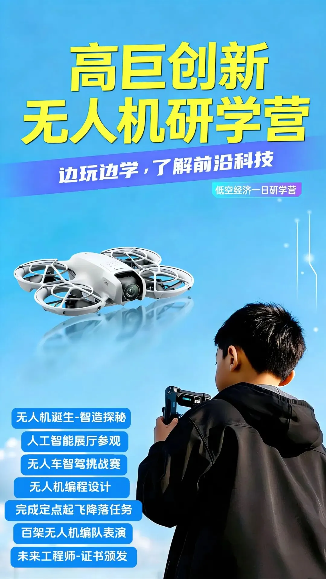 无论是小学低年级学生的“未来启程”,还是初中生的“智控精英”,每个孩子都能在这里找到属于自己的科技梦想。让我们携手,为孩子们打开这扇通往低空未来的大门,让他们在实践中成长,在探索中启航!