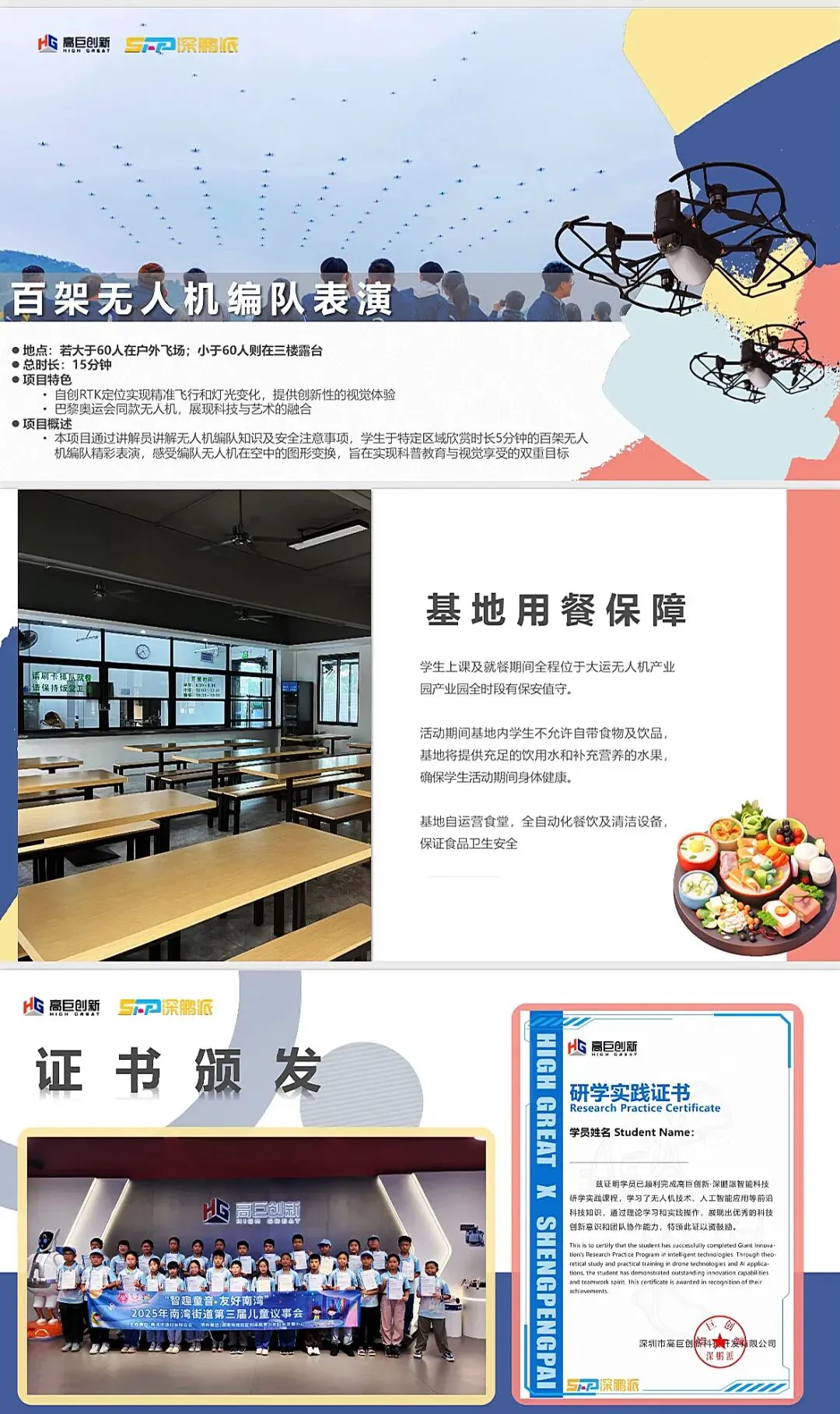 在深圳这座充满创新活力的城市,一场专属于青少年的科技盛宴正悄然展开。当低空经济遇见人工智能,当无人机编队点亮夜空,当编程思维碰撞国防教育——高巨创新低空科教文旅基地为1-9年级学生打造了独具特色的半日与一日研学项目,让孩子们在实践中感受科技魅力,在探索中启迪未来梦想。