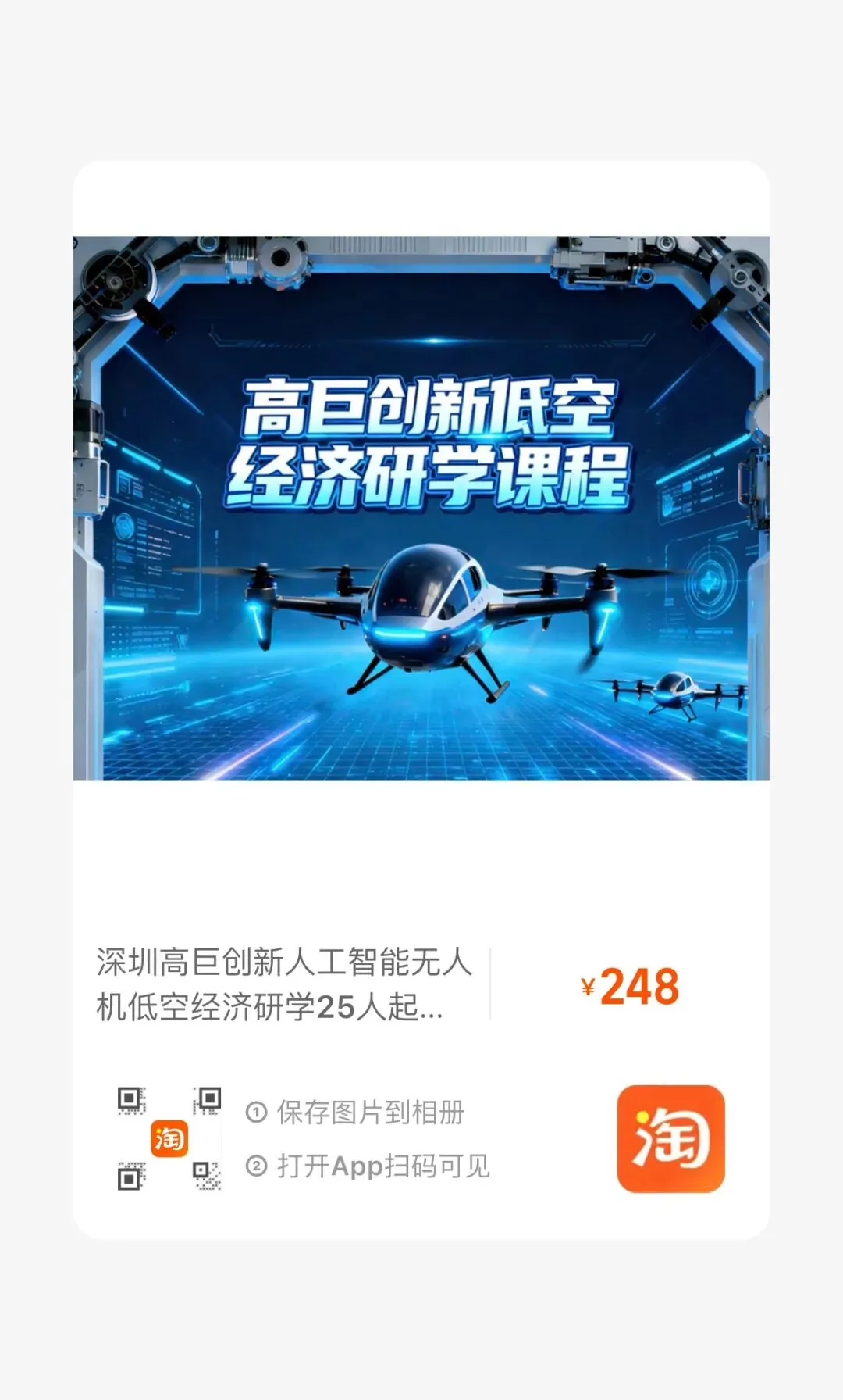 【淘宝】https://e.tb.cn/h.iNlsShV7aIiHuFe?tk=e8I25fTKVxa CZ005 「深圳高巨创新人工智能无人机低空经济研学25人起成团不可个人报名」