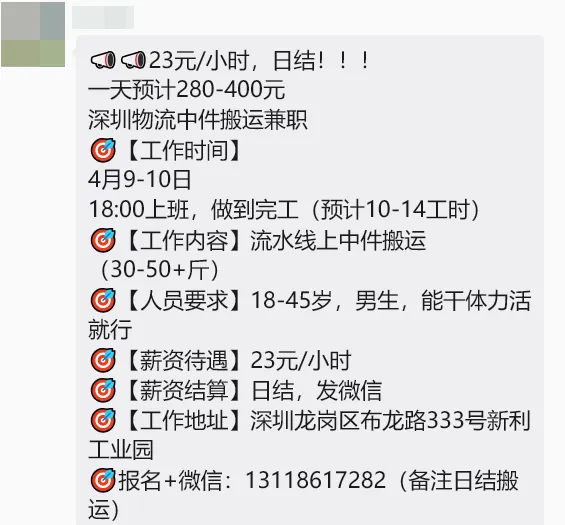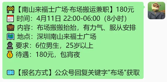 深圳兼职|日结/兼职/零工|4月11号及以后