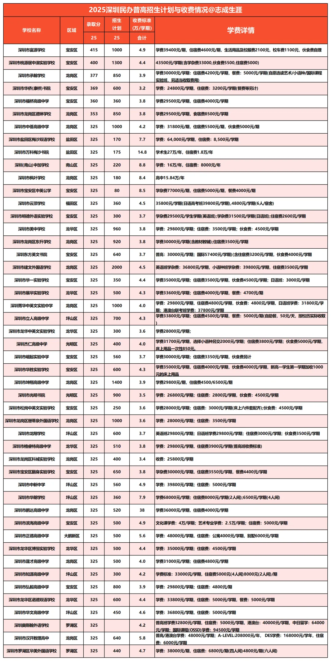 给大家汇总了深圳民办高中收费标准
