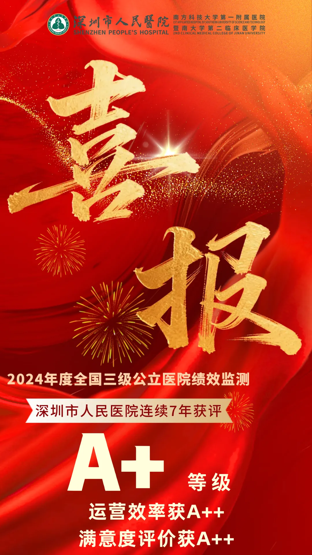连续7年获 A+!深圳市人民医院2024年度 "国考" 佳绩揭晓