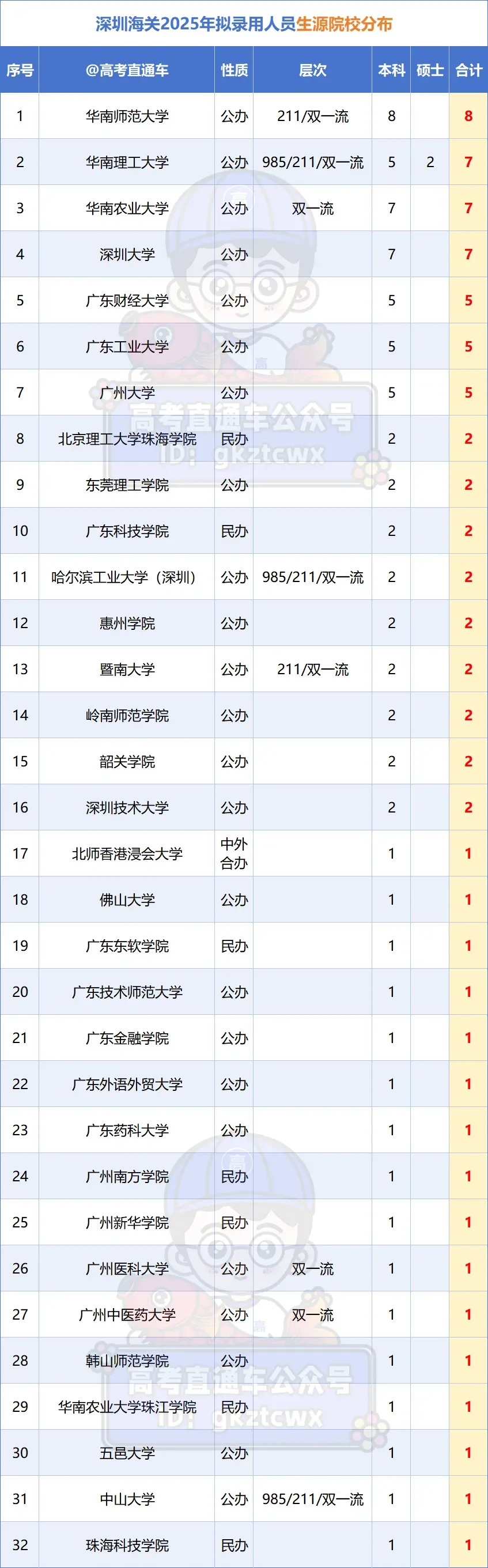 今天,车车就给大家分析一下深圳海关2025年拟录用情况,看看哪些院校更受青睐。