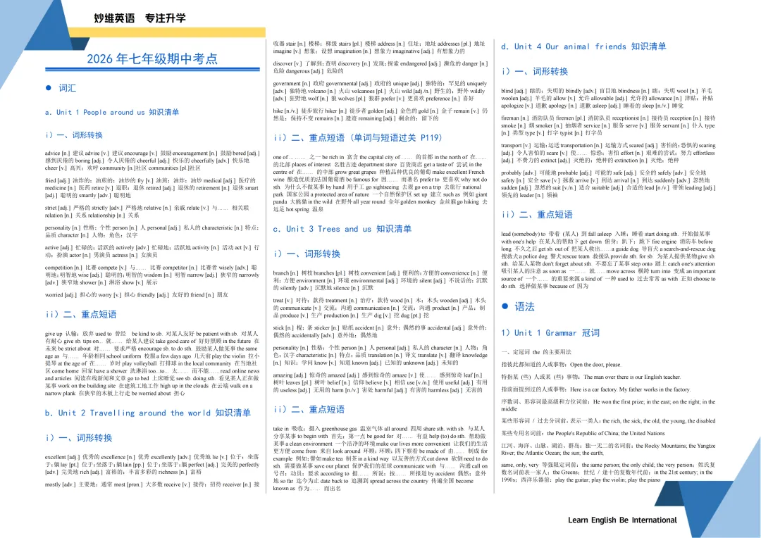期中考试越来越近,很多中学生和家长都开始感到压力:初中阶段,科目一下子变多,各科知识点又碎又密,孩子每天作业写到很晚,复习时间被拆得零零碎碎,常常顾了这科丢了那科。我们在日常教学中也发现,不少同学复习时还在沿用“翻书+盲目刷题”的老方法,缺少对考点的系统梳理,导致花了大量时间,分数却提升不明显。针对深圳初中本学期的教学进度,再结合近两年期中真题的考点分布,思考乐中学教研组整理了一套《中学期中核心考点清单》,用最轻量的方式,帮孩子把精力用在真正能提升的地方。 这份《中学期中核心考点清单》有什么特点?- 分年级、分学科整理覆盖初中、高中各年级,语数英理化五科单独成册,完全贴合本学期前半段学习内容。教研组从大量真题中筛选出常考、分值高、易丢分的内容,不做无效堆砌,让孩子复习更有方向。每一个核心考点,都配上常见易错提醒,孩子一边记考点,一边避坑,效率更高。方便打印、随身携带、睡前快速过一遍,考前冲刺特别实用。【资料预览】