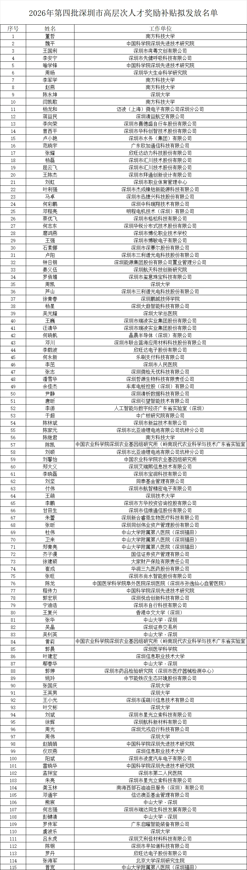 根据《关于进一步完善深圳市高层次人才奖励补贴发放有关事项的通知》(深人社规〔2022〕1号)等文件有关规定,我局已完成2026年第四批深圳市高层次人才奖励补贴的审核工作,现按要求将名单予以公示(见附件)。
