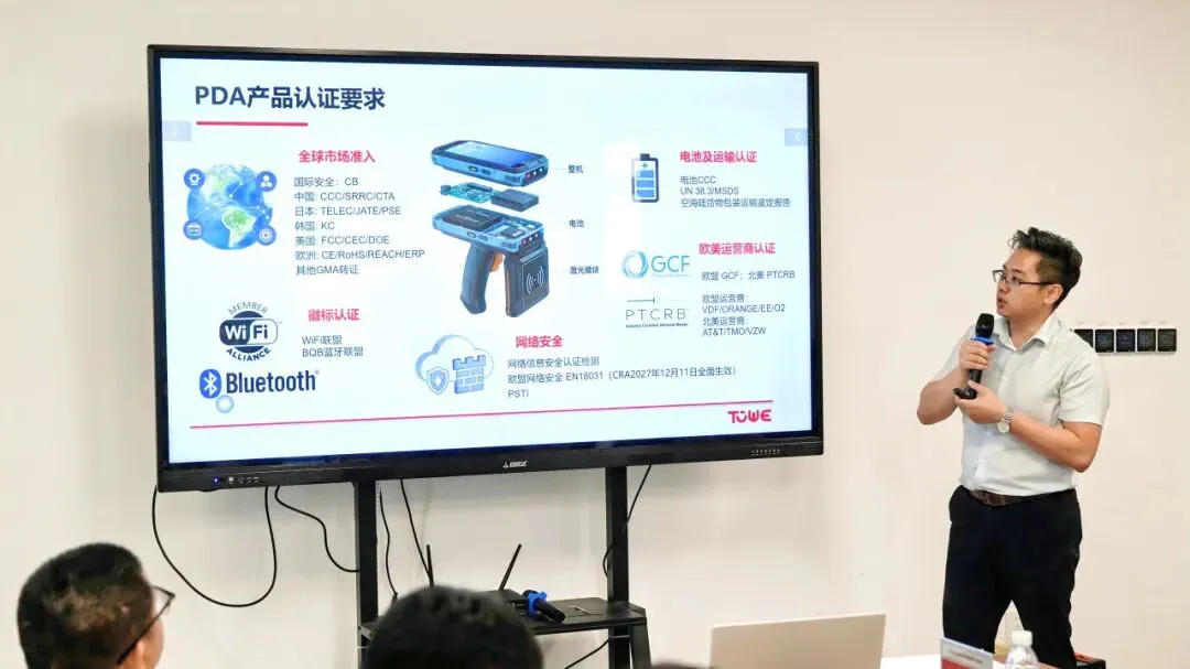苏试拓为无线测试(深圳)有限公司销售经理兰金成围绕手持终端与三防平板全球合规出海,系统讲解全球市场准入认证要求,以及 CB/WiFi 联盟/BQB/UN 38.3/CE/FCC/TELEC /JATE/GCF/PTCRB 等关键认证要求。他结合产品外观结构、射频规格、SAR、OTA、HAC 等实操要点,拆解日本、欧盟、美国、加拿大、澳洲等区域认证典型误区与避坑方案,帮助企业规避测试返工、周期延误、认证失效等风险。兰金成同时介绍苏试拓为拥有 RF、EMC、SAR、HAC、CBRS、E112、OTA、安规、网络安全等一站式测试能力和GMA(全球市场准入)服务,可提供从方案规划、测试验证到取证发证的全流程服务,助力开源鸿蒙行业终端及各类手持、三防设备高效合规出海,打通全球市场准入通道。