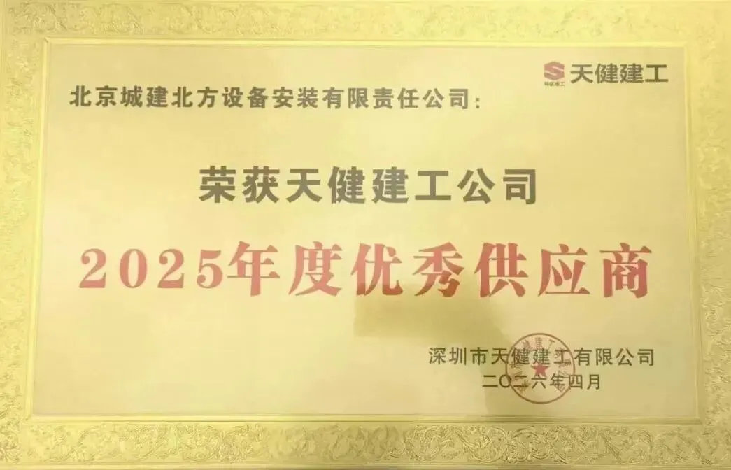 4月8日,深圳市天健建工有限公司2026年度供应商大会在深圳市天健创业大厦举行,北京城建北方设备安装有限责任公司凭借卓越的施工品质、诚信的履约精神及优质的服务水平,荣获天健建工公司“2025年度优秀供应商”奖项,可喜可贺!这份荣誉将激励公司脚踏实地、精益求精,持续打造精品标杆工程。