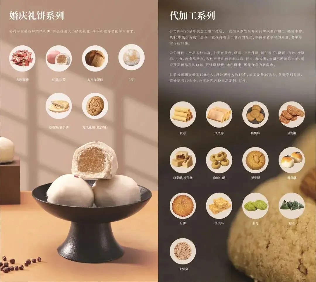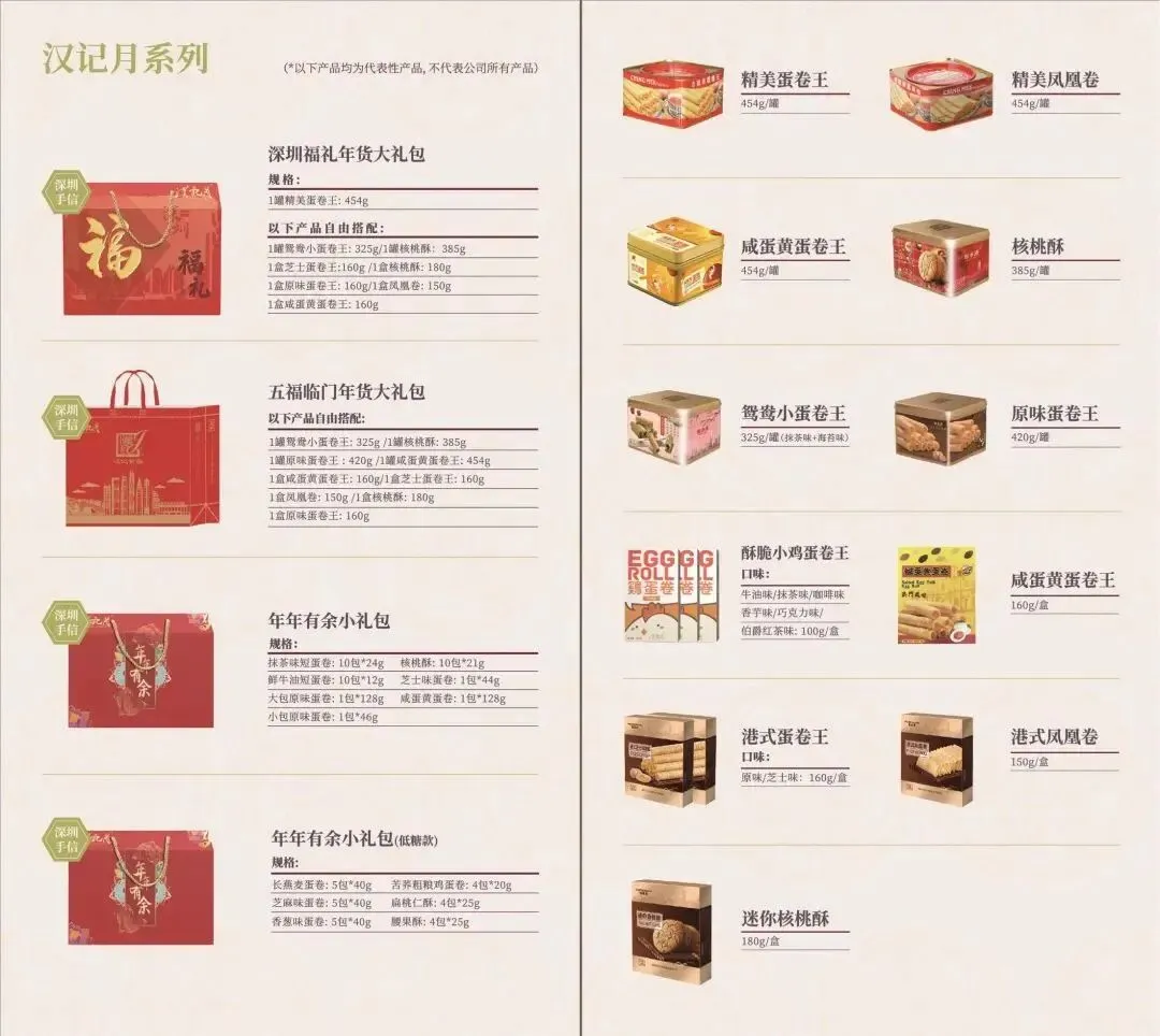 目前,汉记食品已经发展成为集研发、生产、销售为一体的综合性企业,且主要产品类型十分丰富,有蛋卷类、月饼类、饼干类、干果类、糖果、小食等。各类产品皆分有高档礼品装及时尚休闲装,味道独特,是送礼和自享的佳品。汉记食品的产品多年来一直远销美国、加拿大,在顾客心中树立了良好形象。