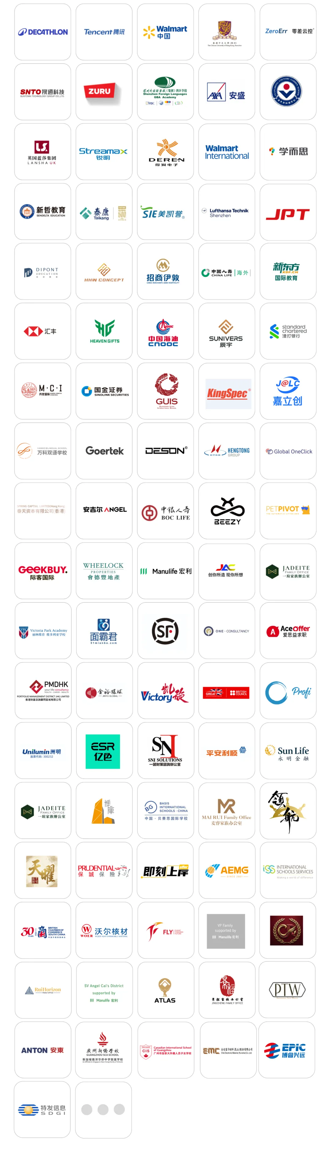 英国文化教育协会留英校友会,西交利物浦大学就业发展中心,英国萨塞克斯大学中国校友会、留法校友会、兰卡斯特大学就业中心 LUMS Careers、法国里昂商学院、LSE Career,布里斯托大学就业中心,圣安德鲁斯大学就业中心,圣路易斯华盛顿大学职业发展中心巴塞罗那中国学生学者联谊会、卡尔加里大学中国学生学者联合会、纽卡斯尔中国校友会NUCAA、UCL深圳校友会、牛津剑桥大湾区校友会、帝国理工华南校友会、爱丁堡学联、LSE中国校友会、曼彻斯特广东校友会、华威大学深圳校友会、拉夫堡大湾区校友会深圳分部、谢菲尔德大学中国华南区校友会、南安普顿大学粤港澳湾区校友会、考文垂大学深圳校友会、莱斯特大学深圳校友会、卡迪夫大学深圳校友会、伦敦艺术大学华南校友会、威斯敏斯特大学华南校友会、杜伦大学深圳校友会、英国约克大学深圳校友会、萨里大学中国校友会、萨里大学深圳校友会、诺丁汉大学深圳校友会/广东校友会、哥伦比亚大学深圳校友会、卡耐基梅隆大学深圳校友会、波士顿大学深圳校友会、哈佛大学华南校友会、亚利桑那州立大学粤港澳大湾区校友会、斯坦福大学华南校友会 Standford Club of South China、JHU Carey South China Alumni Club、纽约电影学院中国校友会、昆士兰大学深圳校友会、悉尼大学深圳校友会、悉尼大学广州校友会、墨尔本大学广东校友会、莫纳什大学深圳校友会、莫纳什大学广州校友会、Latrobe university 华南区校友会、滑铁卢粤港澳大湾区校友会、Audencia深圳校友会、Audencia SZ Alumni Community、索邦大学深圳校友会、法国ESSEC高商深圳校友会、瑞典大学中国校友会等。