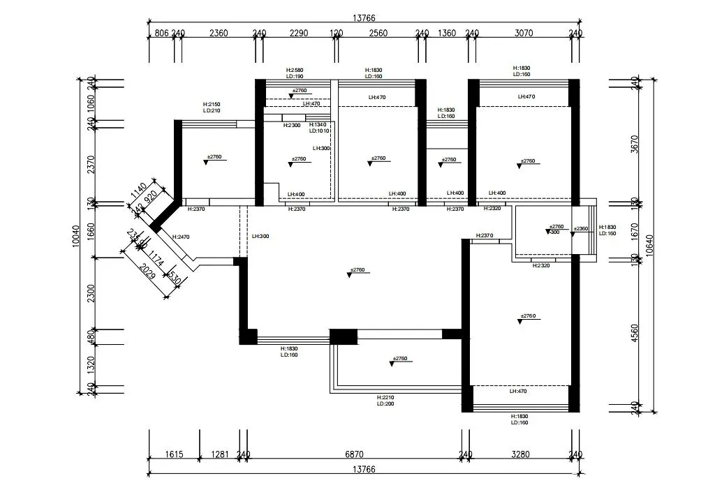 这是一个布局清晰、注重通风与采光的现代住宅。户型整体呈矩形,通过内部走廊有效划分动静区域。各房间均有明确的功能指向,如带大面积窗户的起居空间与卧室。细节处如门窗定位标注详尽,可见设计对空间尺度与自然光线的精确考量。公共区域相对开阔,私密空间分布合理,旨在构建一个功能明确、居住舒适、尺度感良好的居住环境。绿调沉静,木影斑驳,陈设温煦。