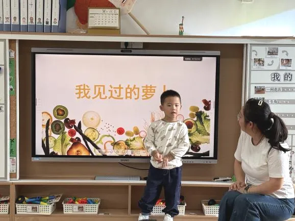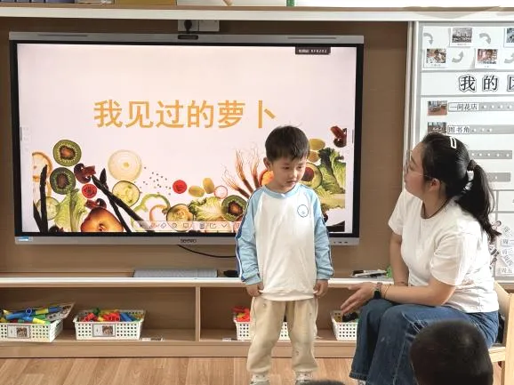 幼儿在自主讨论中调动生活经验,发展语言表达与倾听能力,对萝卜形成直观印象。