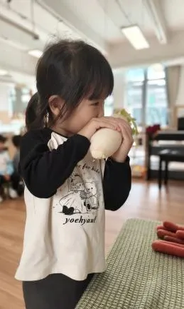 在一次平常的餐后谈话中,幼儿对萝卜产生了浓厚兴趣,纷纷讨论萝卜的颜色、形状与味道,并自发提出“萝卜从哪里来”“能不能自己种萝卜”等真实问题。幼儿兴趣鲜明、问题具体,且与班级种植园地的资源高度契合,具备极高的探究价值与可操作性。