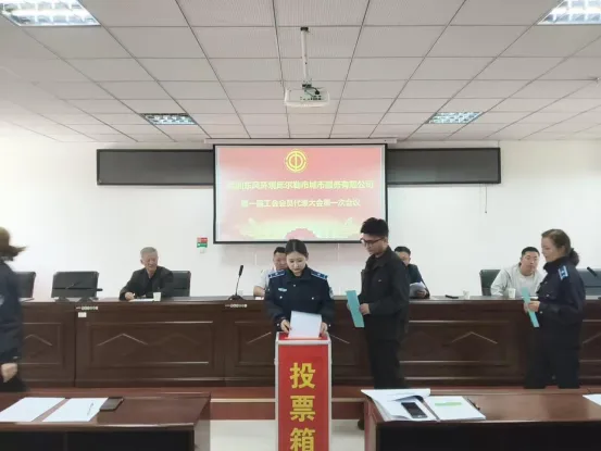 库尔勒市总工会、库尔勒市住房和城乡建设局系统工会、库尔勒市市容环境卫生事务中心相关领导莅临指导,公司全体职工代表齐聚一堂,共同见证这富有意义的时刻。 会议在庄严的《中华人民共和国国歌》声中拉开帷幕。会议严格按照《中华人民共和国工会法》《中国工会章程》及基层工会选举工作规定,依次审议通过工会筹备工作报告、大会选举办法(草案),以无记名投票、差额选举的方式,民主选举产生项目公司第一届工会委员会委员、经费审查委员会委员,同步协商产生女职工委员会委员。选举全程公开透明、规范有序、依法合规,充分彰显全体职工的共同意志。库尔勒市总工会领导对项目公司工会成立表示热烈祝贺,对公司重视工会建设、关爱职工发展的举措给予高度肯定。领导强调,工会是连接企业与职工的桥梁纽带,希望工会立足环卫行业实际,聚焦基层职工需求,提升工作实效,既要依法维权、构建和谐稳定劳动关系,也要激发职工干事热情,为建设整洁、优美、宜居的文明城市贡献力量。