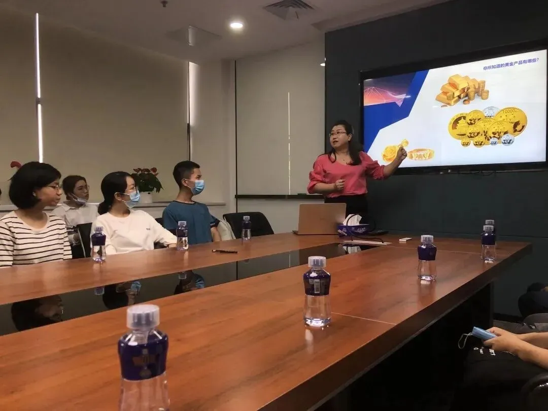 在参访的过程中,我司同事细致认真的为同学们介绍了相关的黄金知识,丰富了大家的知识体系,也摄取了一些在课本中不曾学到的市场知识,这也是此次联动活动的主要目的之一。希望通过企业参访活动,可以为课堂知识构建更客观完整的实战经验。