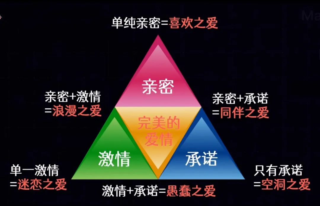 随后,斯滕伯格爱情三角理论登场——激情、亲密、承诺,三要素构成完整爱情。原本抽象的心理学,变成了高中生看得懂、用得上的“认知工具”:心动不可怕,可怕的是看不清、拎不清。