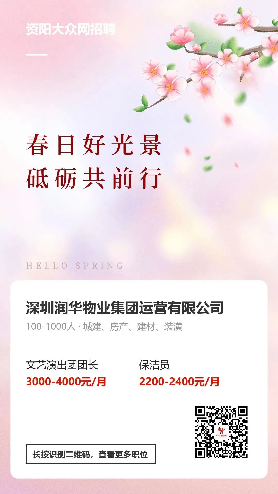 >安岳【保洁员】2200-2400/月,深圳润华物业集团有限公司急聘中~
