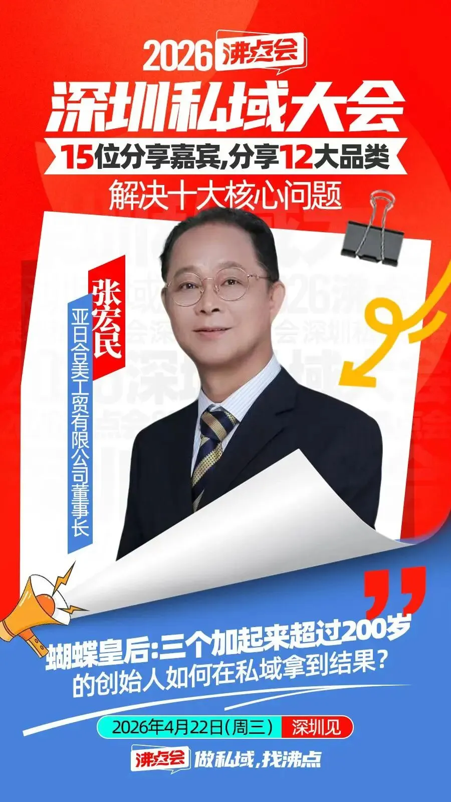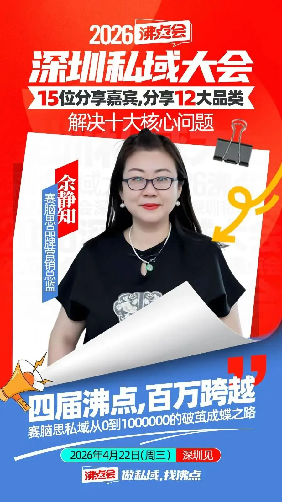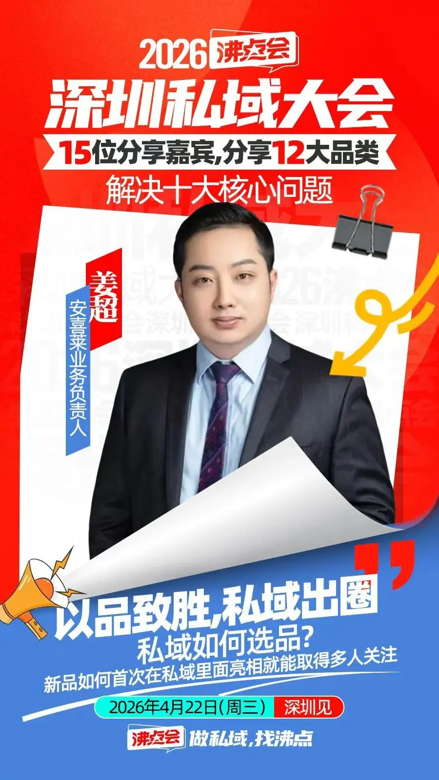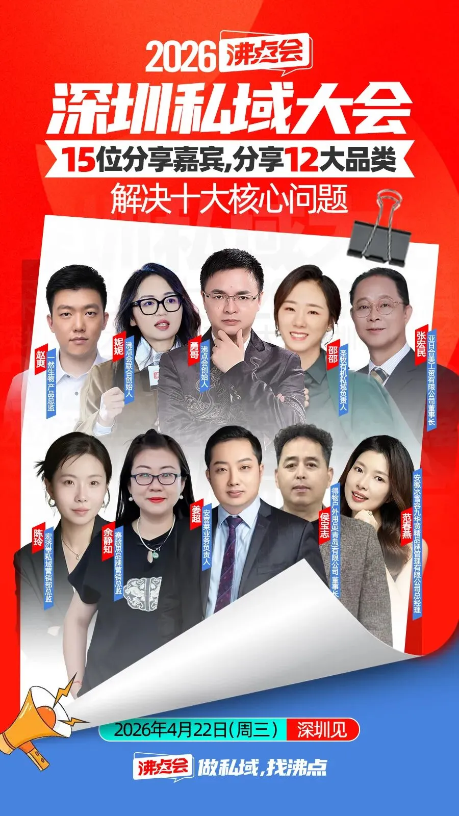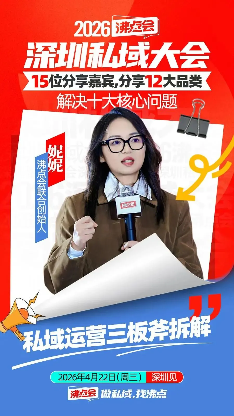 4月22日,沸点会·深圳私域大会,我们拒绝空洞的理论,只做有结果的分享;拒绝无效的聚集,只做有价值的交流。聚焦实战经验的传递,助力每一位参与者复制成功、快速成长。
