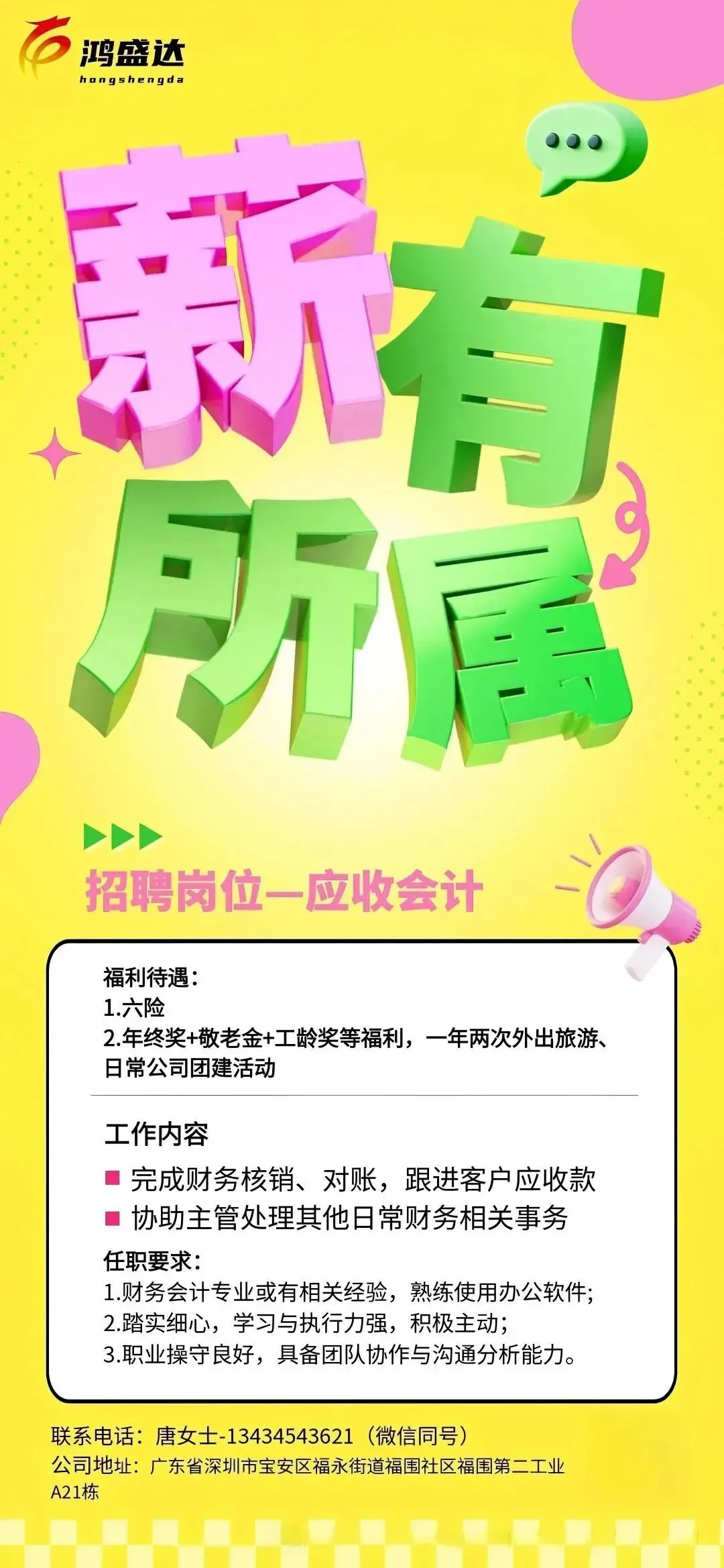 >【深圳招聘】鸿盛达招聘啦!六险+年终奖+敬老金+工龄奖等福利!鸿盛达国际货运代理有限公司招聘简章