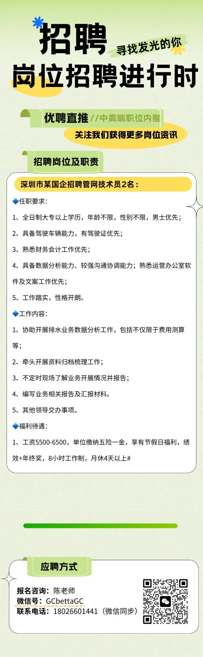 >深圳招聘|深圳市某国企招聘(管网技术员)