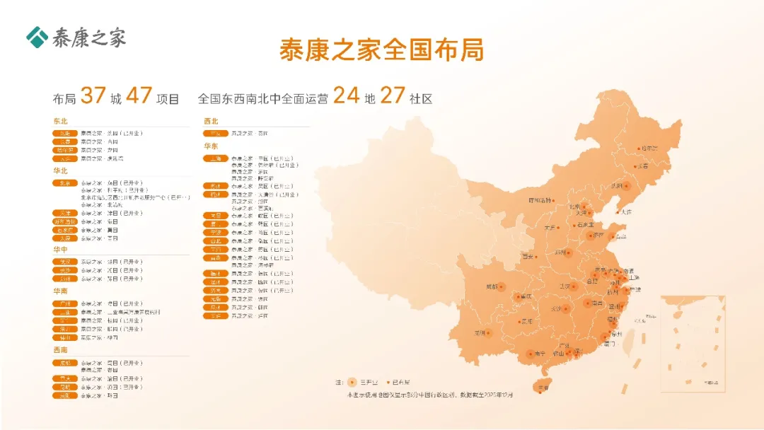 鹏园的背后,是泰康之家全国布局的强劲支撑与飞速发展的坚实底气 —— 泰康深耕银发经济,累计投入超 700 亿元投资建设运营医养实体,目前已在全国布局 37 城 47 个项目,总布局床位数近 9 万,位居行业第一,其中 24 个城市的 27 个项目已正式运营,在住居民超 2 万人。