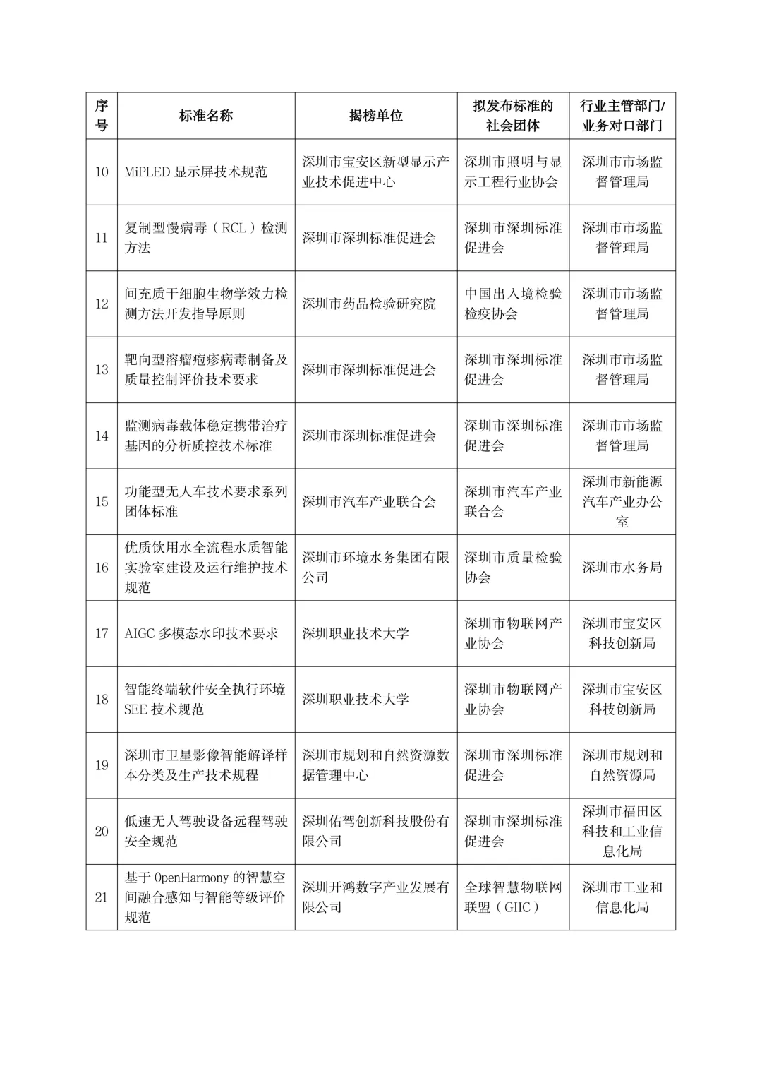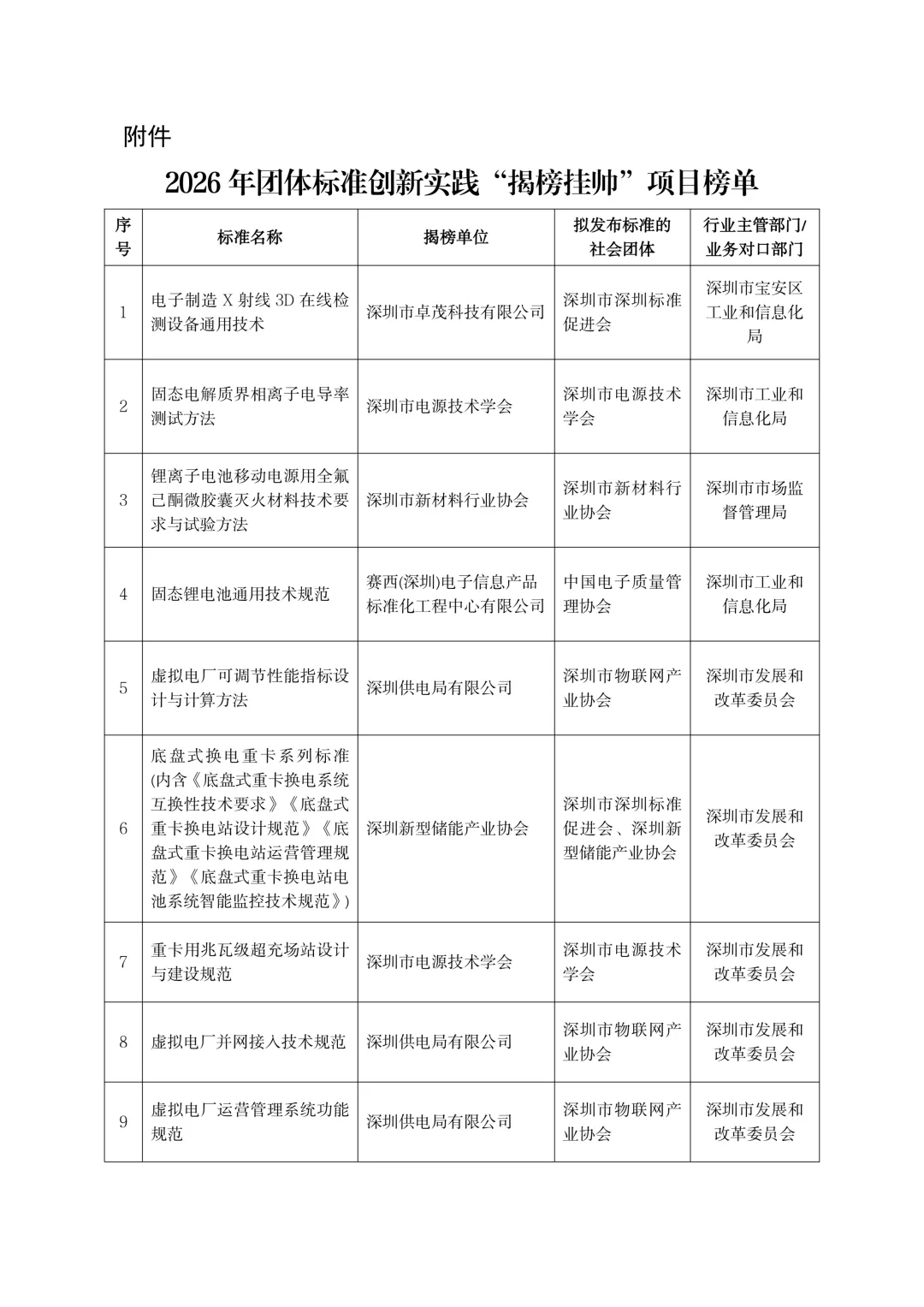 深圳市市场监督管理局关于公布2026年团体标准创新实践“揭榜挂帅”项目榜单的通知