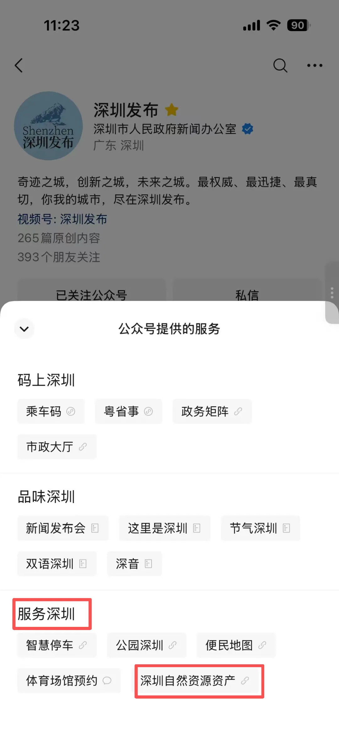 “深圳发布”菜单栏——“服务深圳”