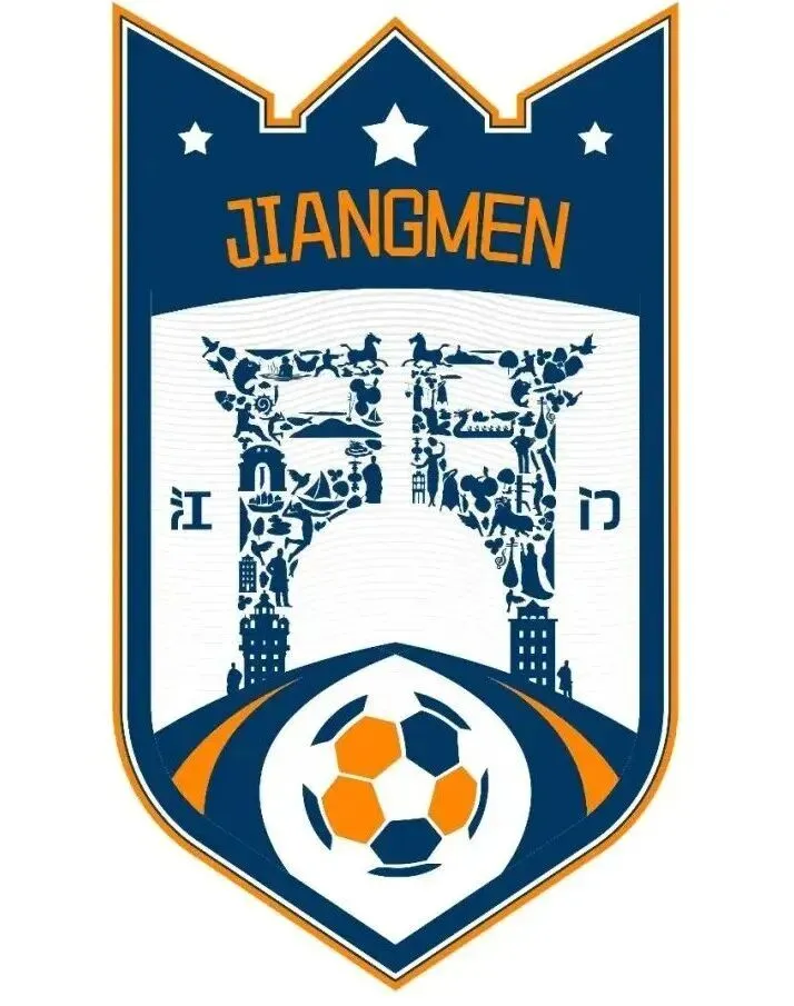 本标识以守护之盾为形,融入碉楼剪影与水纹边框,色彩上新会陈皮橙与海洋蓝并置,凝结地域风物与精神。视觉核心为汇聚江门特色元素的品牌化“門”字,“門”加上“人”象征着江门足球以万众同心、聚力破门的锋芒,也代表着江门人民敢拼敢闯、一往无前的拼搏精神。整体设计将静态文化符号转化为充满张力的运动叙事,成为承载城市认同、迸发体育激情的视觉标志。