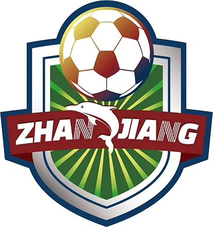 徽中的中华白海豚跃于海岸线环绕的绿茵之上,与湛江城市符号融为一体,托起被赋予朝阳光辉的足球运动。