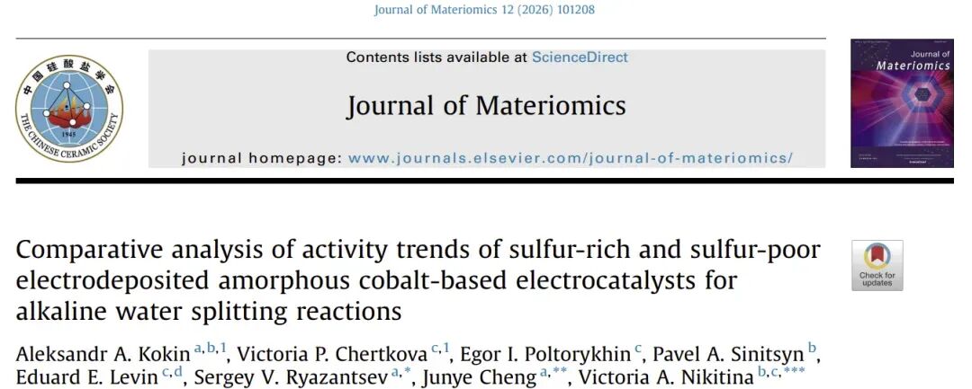 近日,深圳北理莫斯科大学材料科学系副教授程俊业团队与副教授Sergey V. Ryazantsev团队在能源材料领域取得新进展,相关成果分别发表于国际知名学术期刊Journal of Materiomics和Energy & Environmental Materials。两项成果均聚焦电化学能源材料中的关键科学问题,分别围绕碱性电解水催化剂的组成—结构—性能关系,以及高熵氧化物在锂硫电池中的应用前景展开,体现了双方团队在能源催化与储能材料方向的持续积累和国际合作优势。