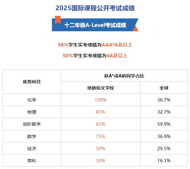 在2025年的IGCSE与A Level考试中,各年级整体表现尤为卓越,成绩明显高于全球平均水平。 其中一名学生于数学科考试中取得满分,荣获全球最高分,并获颁「剑桥卓越学子奖」之「世界顶尖奖」。